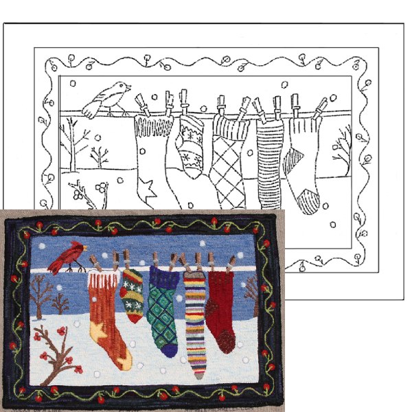 Socks on a Line Rug Hooking Pattern 25″×36″
